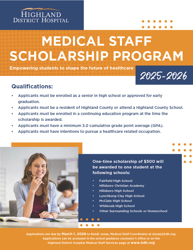 Apply today for the 2025-2026 Highland District Hospital Medical Staff Scholarship!